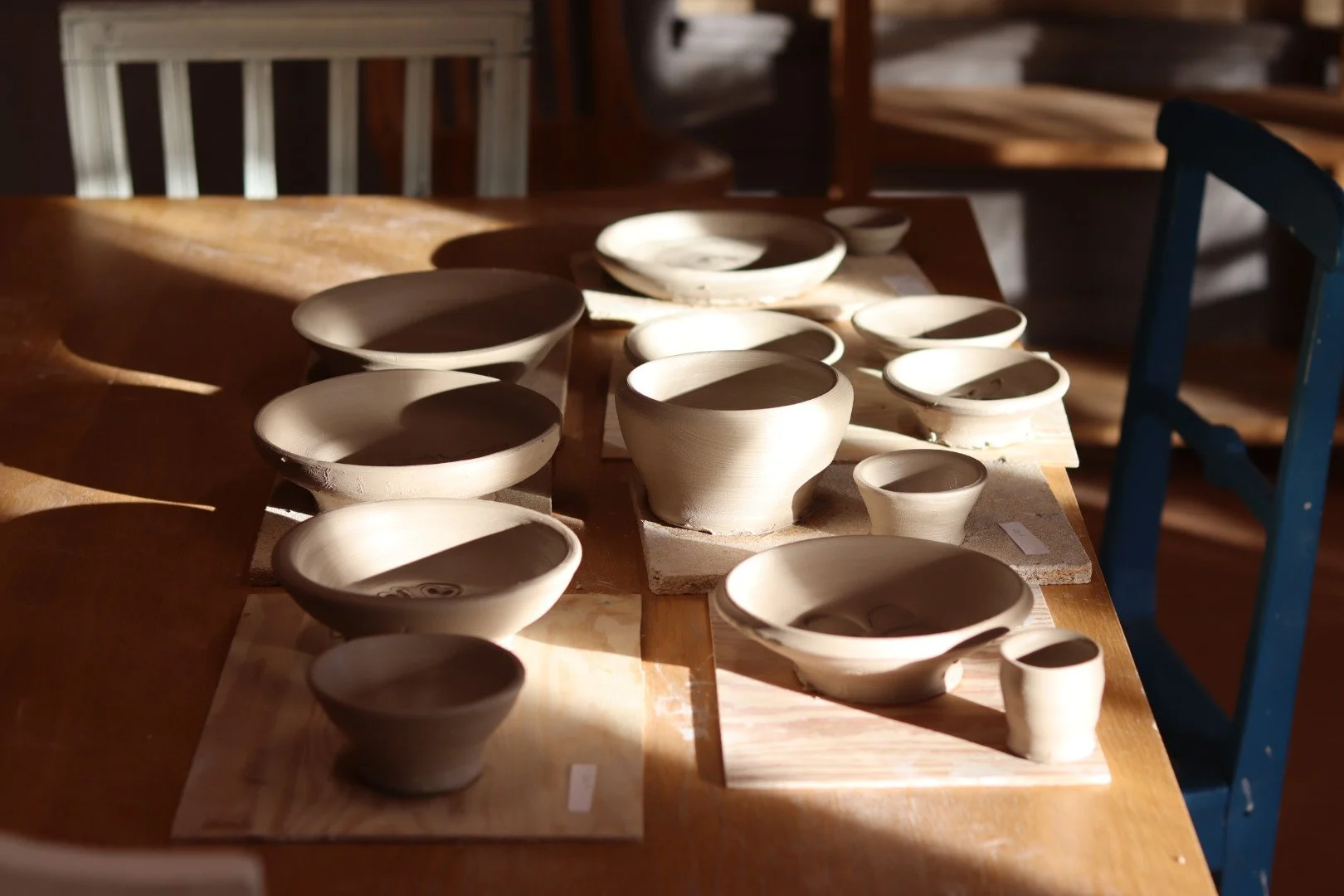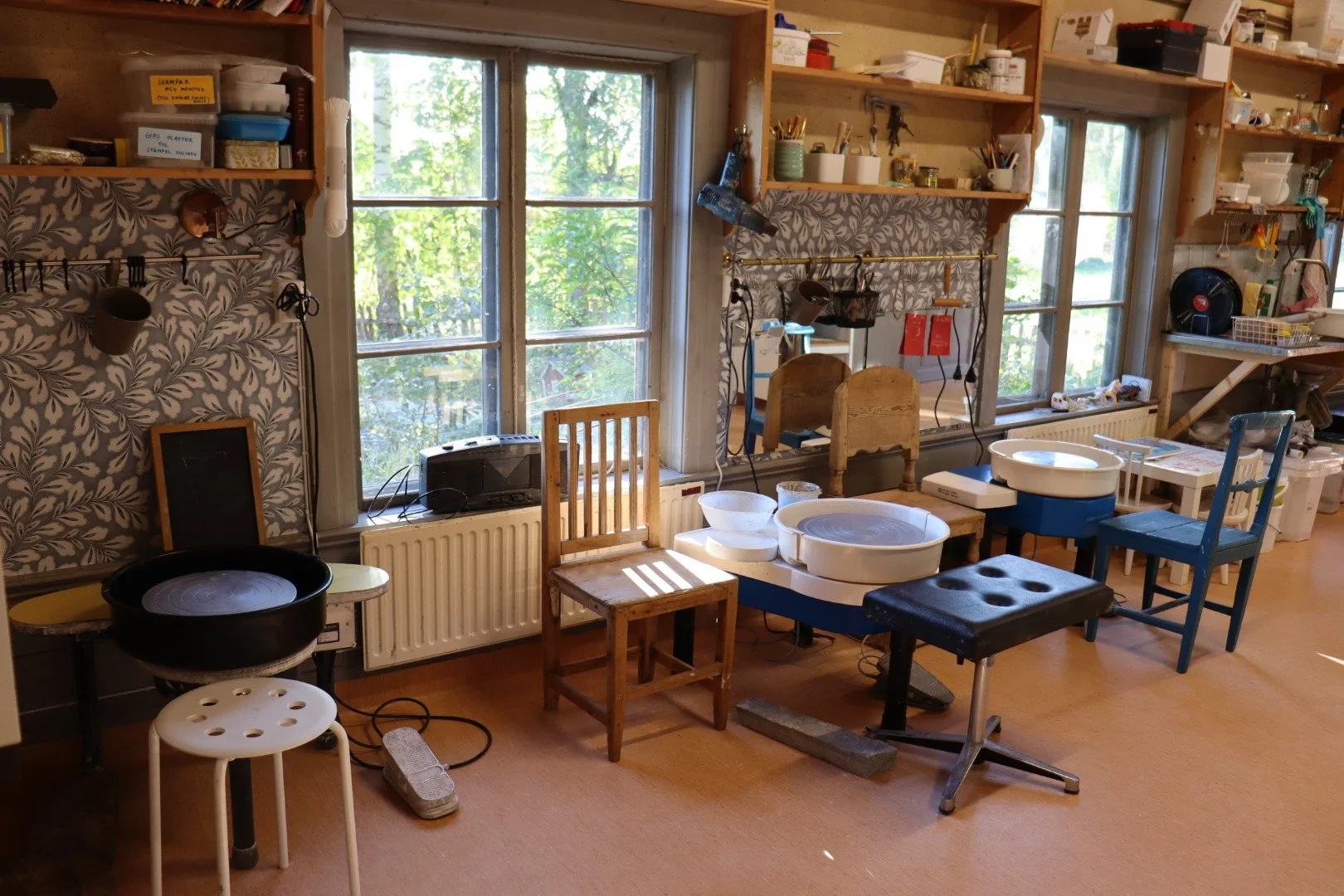 Jag kan ta emot upp till 6 personer åt gången i ateljén – 3 platser för drejning och 3 för handbygge – vilket gör upplevelsen både personlig och inspirerande.
